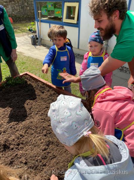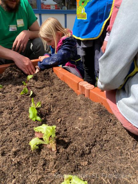Am Donnerstag, den 28. April besuchte uns die Edeka- Stiftung mit Pflänzchen im Gepäck, um mit uns das Hochbeet anzupflanzen.